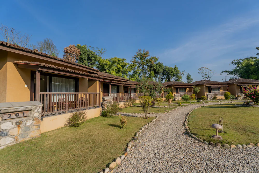 Surrounded by lush greenery and wildlife, Jungle Villa Resort offers a range of well-appointed accommodations, from cozy cottages to luxurious suites, all designed to harmonize with the natural environment. Guests can wake up to the symphony of birdsong and embark on thrilling jungle safaris to witness Chitwan’s diverse wildlife, including rhinoceroses, tigers, and exotic bird species.